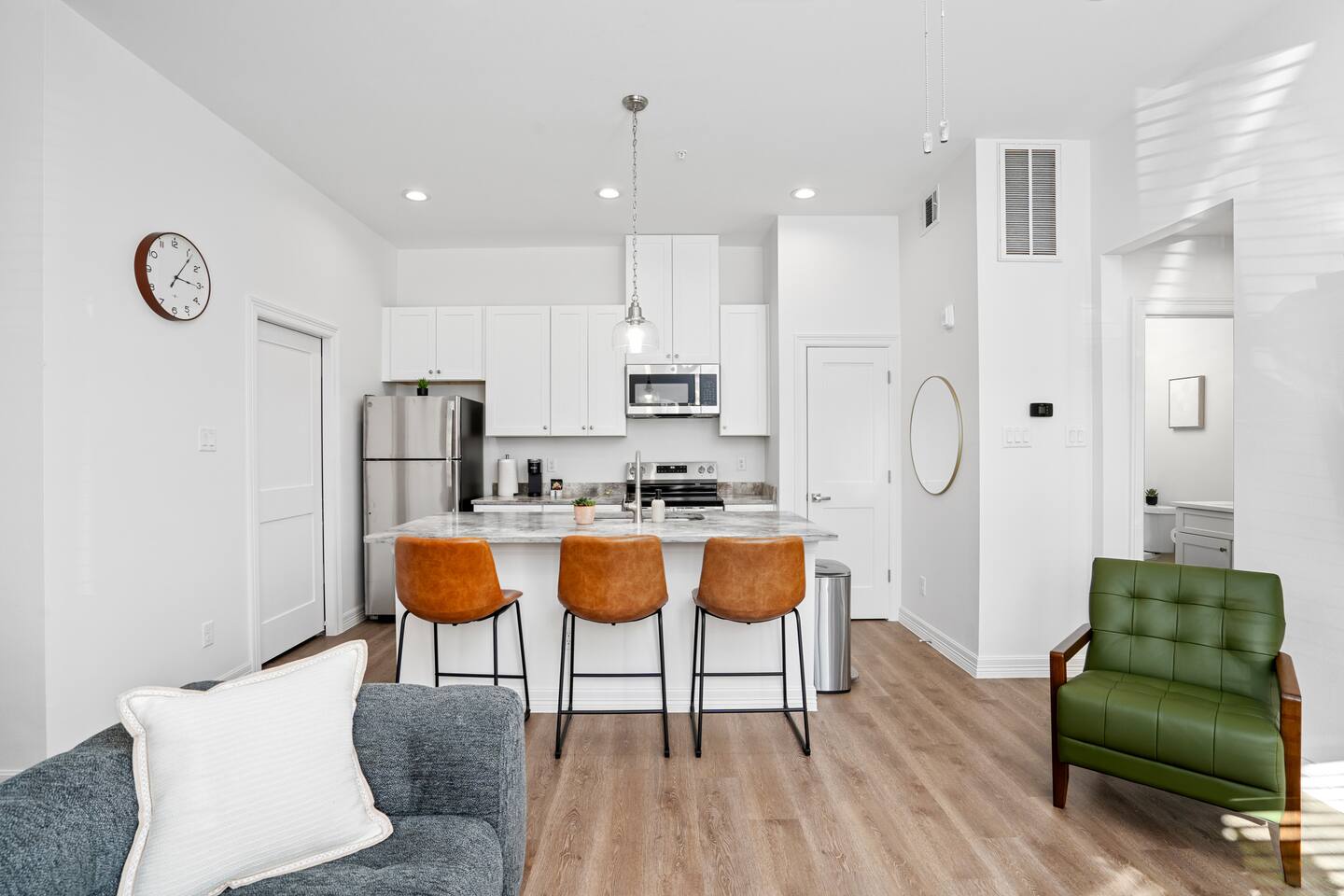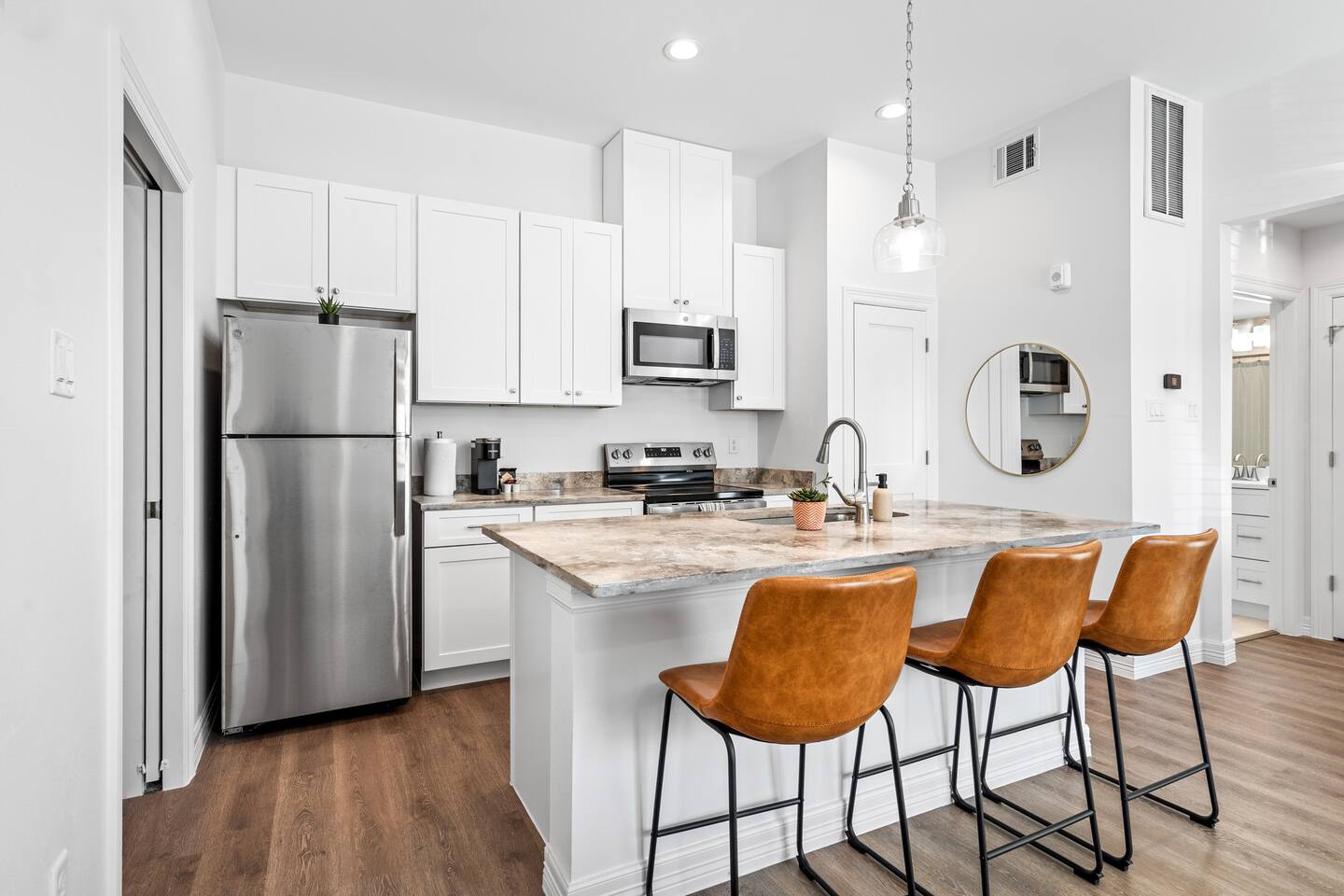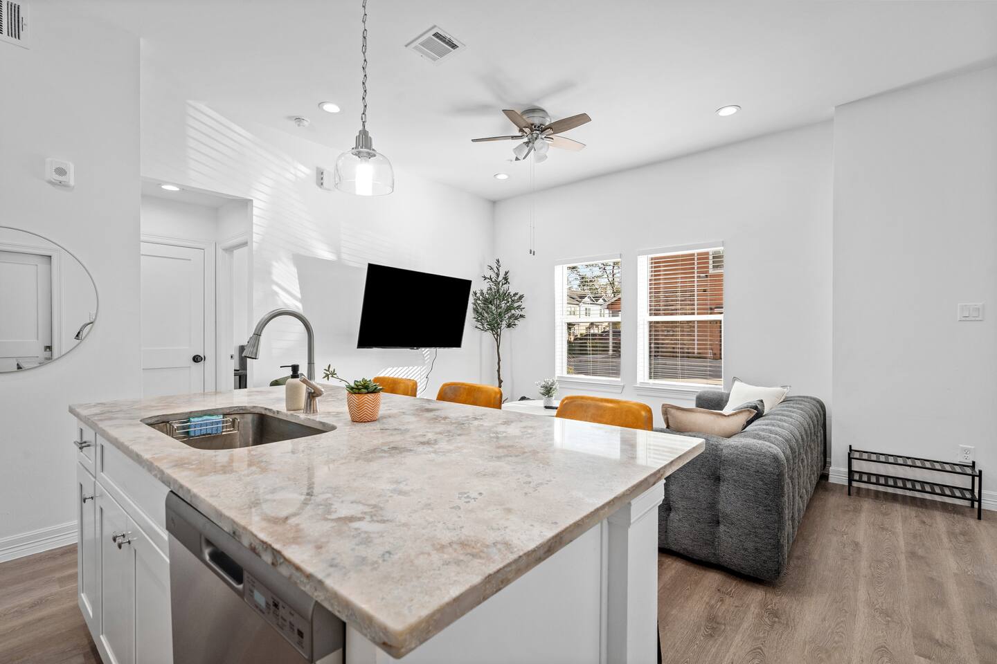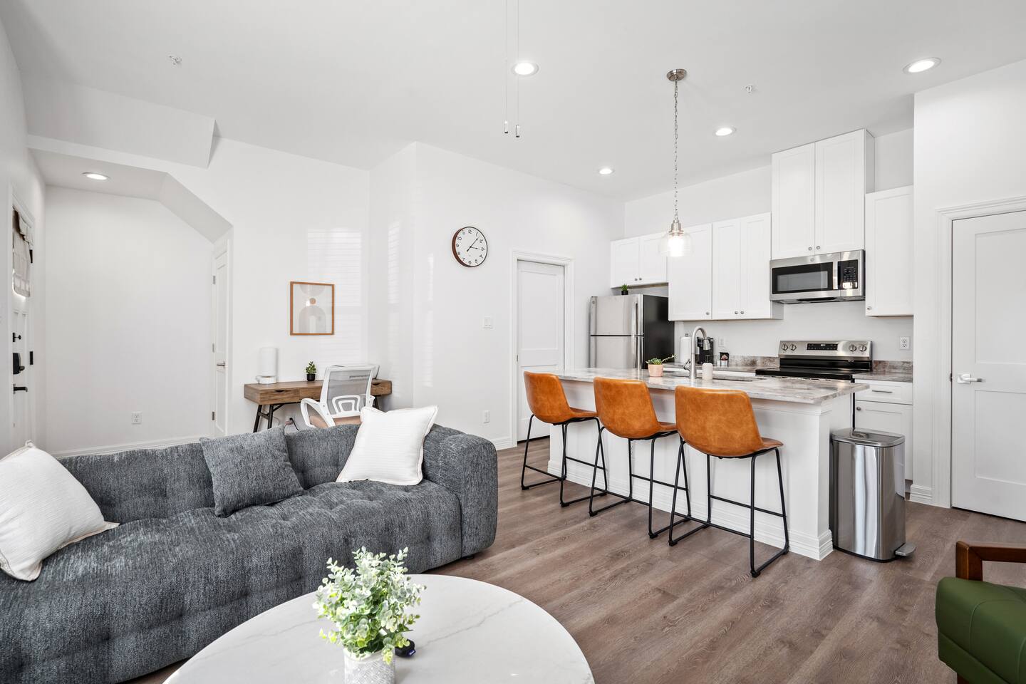 Stylish/Modern 1BR/1BA Near The Heights, Houston Stay in this brand-new build located just 10 minutes from The Heights and 15 minutes from downtown Houston. Enjoy modern design with new appliances, a full kitchen, and in-unit washer and dryer. Relax with 65” smart TVs in the master bedroom and living room. This gated community offers a dedicated parking space & workspace for added convenience. Great location and thoughtfully designed, this home is ideal for your Houston getaway! -Elevatxed Co.